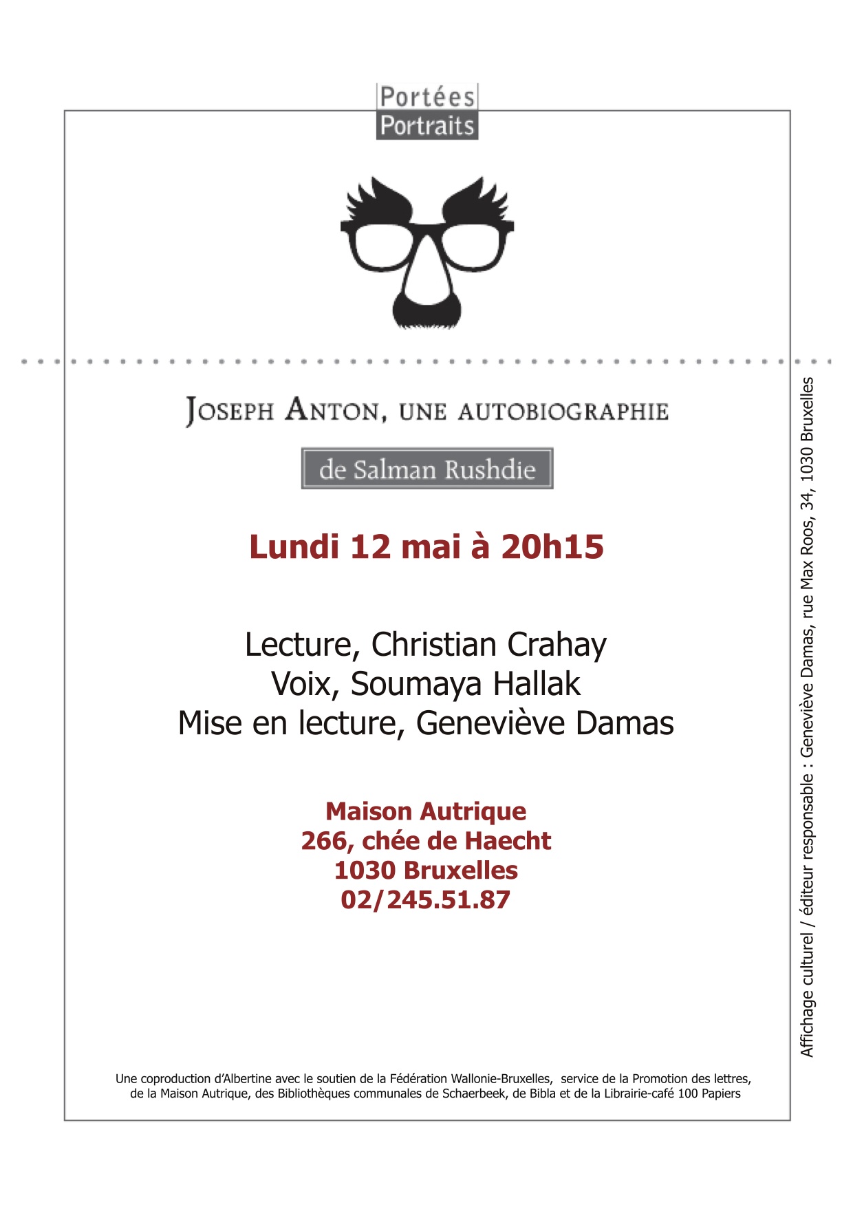 By soumayahallakmars 23, 2014Blog Soirée lecture et chant sur Salman Rushdie à la Maison Autrique à Bruxelles le 12 mai 2014 à 20h15 Cliquez sur le lien pour plus d’infos: Communiqué Rushdie Partager : Cliquez pour partager sur Facebook(ouvre dans une nouvelle fenêtre) Facebook Cliquez pour envoyer par e-mail à un ami(ouvre dans une nouvelle fenêtre) E-mail J'aime chargement… Articles similaires