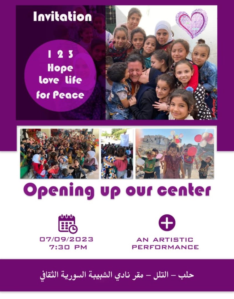7 septembre 2023 Ouverture du centre 1,2,3 Hope, Love, Life for Peace à Alep en Syrie